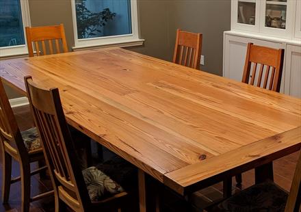 Select Reclaimed Longleaf Pine 1x6 with 2x6 edge boards makes a beautiful dining table. [view large photo]
